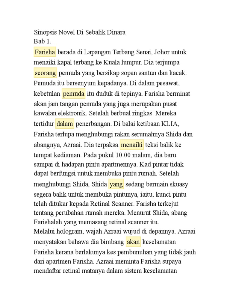 Sinopsis Novel Di Sebalik Dinara Tingkatan 4 Pdf