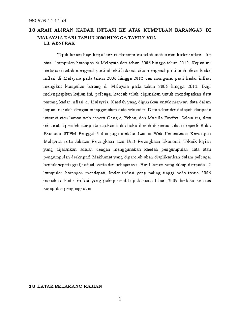 Ekonomi Kk 2018 Kessigaa Docx 1 0 Latar Belakang Kajian Berdasarkan Soalan Kerja Kursus Ekonomi Stpm 944 4 Calon Peperiksaan Diberikan Dua Tema Tema Course Hero